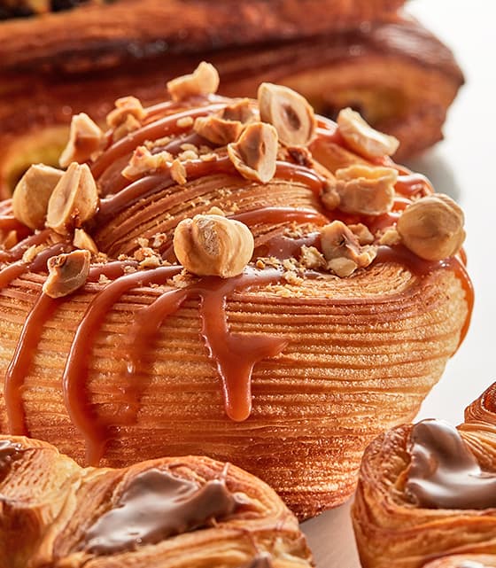 Grâce à un minutieux travail du feuilletage, nos pâtissiers prennent soin de vous fabriquer des viennoiseries dans le plus grand respect du savoir-faire à la Française, tout en y ajoutant leur sublime touche de modernité.
